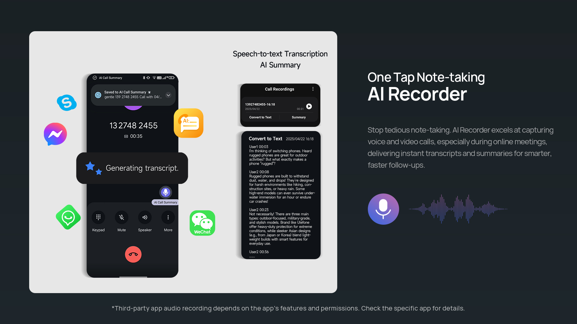 Inteligencia Artificial Avanzada: Equipado con NPU 655, el Armor 34 Pro duplica la eficiencia en funciones de IA, incluyendo reconocimiento de imágenes en tiempo real, fotografía mejorada y grabadora de IA, ideal para reuniones, llamadas y resúmenes automáticos.