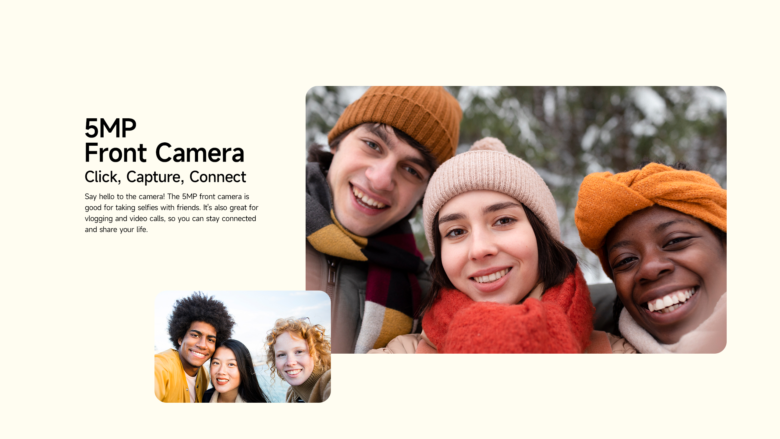 La cámara frontal de 5MP es perfecta para selfies y videollamadas, e incorpora desbloqueo facial, permitiendo acceder al dispositivo de forma rápida y segura.