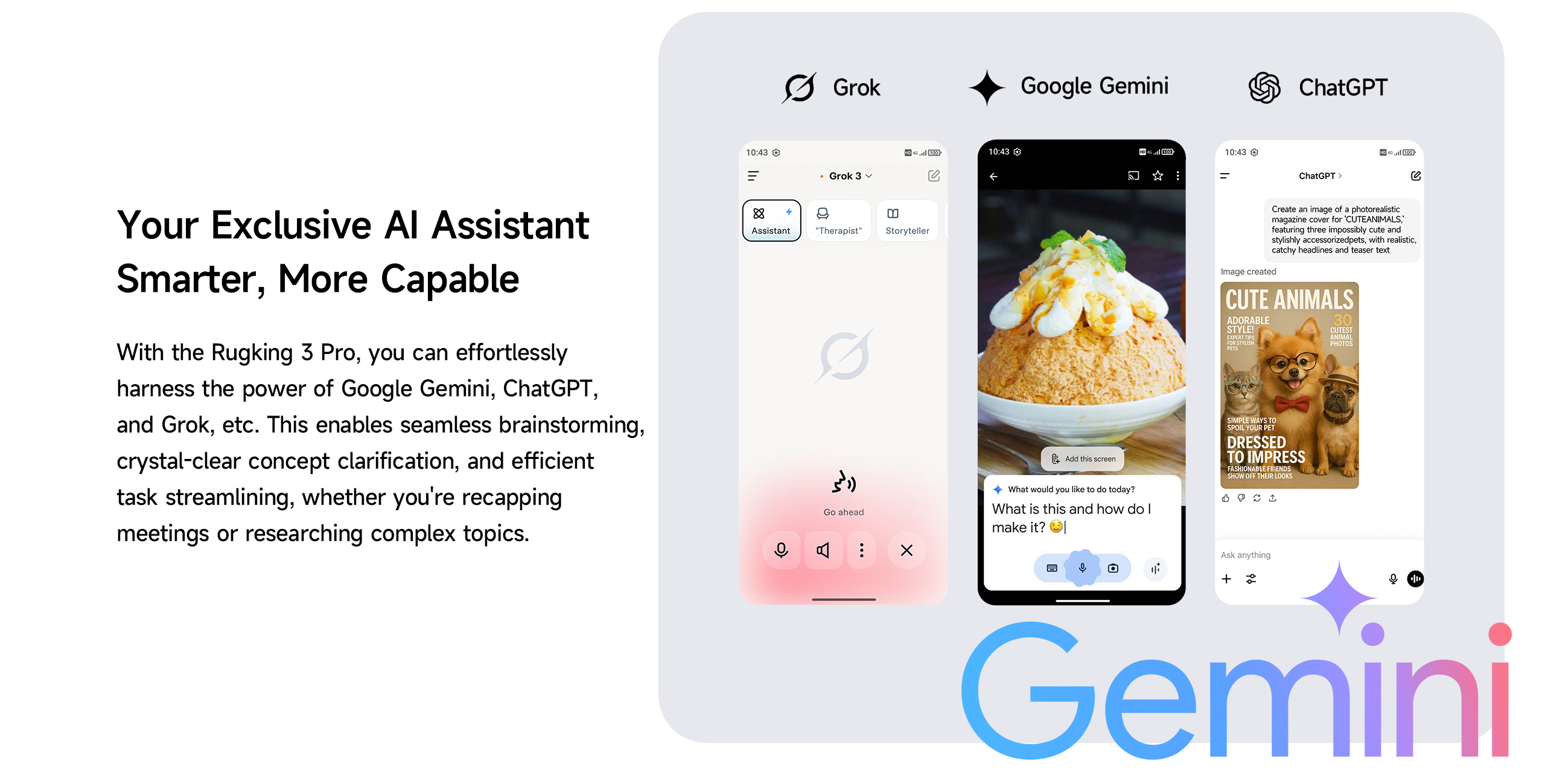 El Rugking 3 Pro incorpora Ulefone AI Pro, que permite aprovechar herramientas de inteligencia artificial como Gemini, ChatGPT o Grok para mejorar tu productividad.