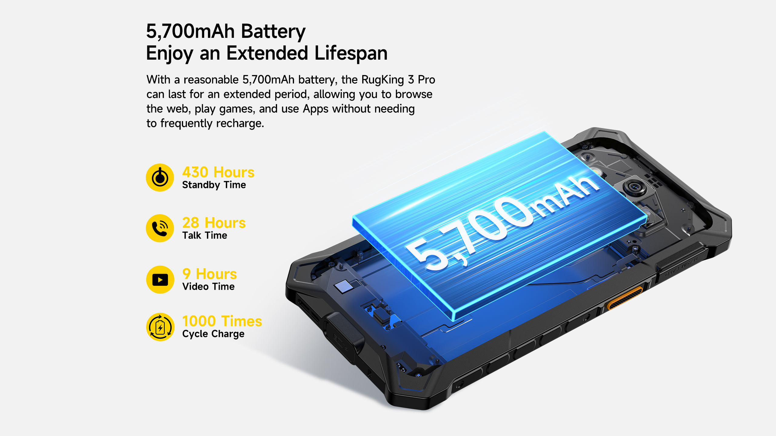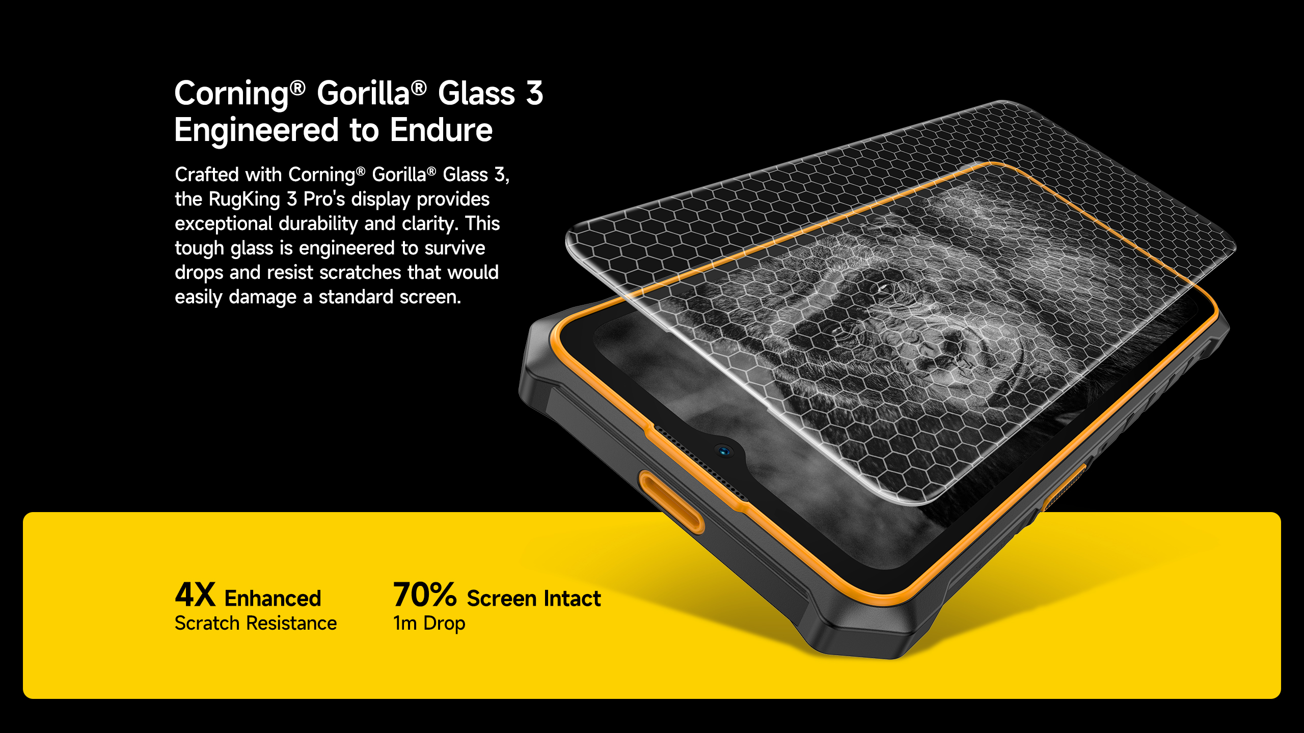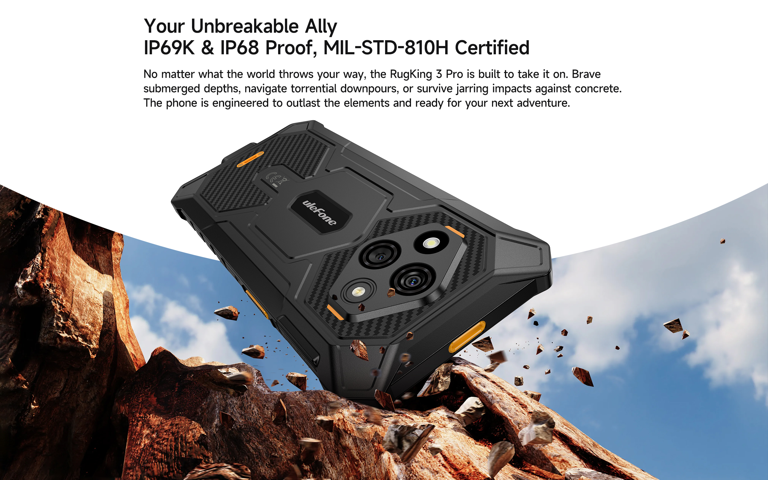 Diseñado con una estructura inspirada en cápsulas espaciales, el Rugking 3 Pro incorpora 27 mejoras estructurales que aumentan su resistencia frente a golpes, caídas, agua y polvo.