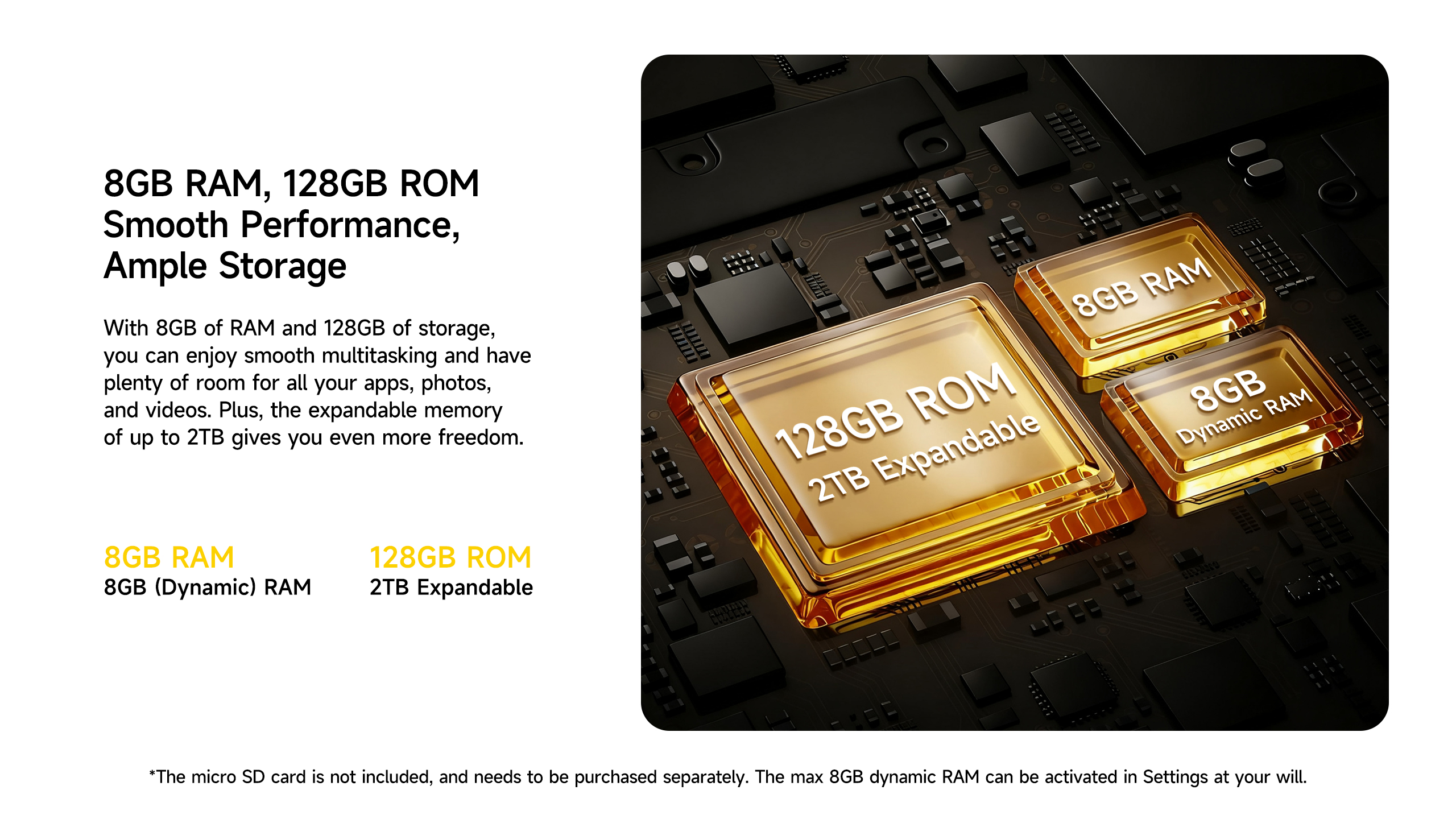 ◼️ Memoria y Almacenamiento: 8GB RAM + 128GB